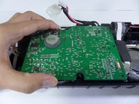 Remove the black plastic screw panel from the boombox.