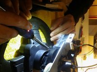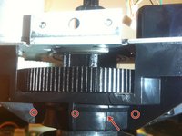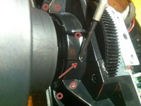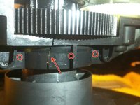 • So here is the crack and we are ready to take the wheel apart. The crack is the reason for your loose or play feeling of your wheel. The red circles indicate the spots, where you should open holes with your solder iron! Through these holes the zip ties are going to pass around and make the plastic strong again!