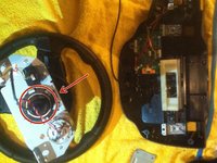 • Remove the Phillips Head Screws that hold the base of the steering wheel.Before you remove the wheel please be cautious to remember where the gears attach each other. So it would be very nice if you mark the spot where they are in touch. When you assemble the wheel attach the gears in the same place as they were from factory.