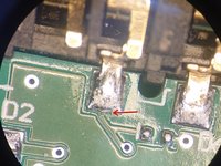 Cette connection semble fonctionner. Mais en y regardant de plus près la piste est coupée juste au niveau de la pastille.