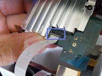 Unlock the connector by flipping the lock back to front. this flap is located closets to the heatsink