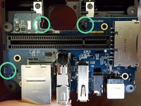Remove the 4 hex screws, 2x are holding the main board from the expansion board. 1x is holding the sound and power metal shield and 1 is left holding the expansion board from the enclosure.