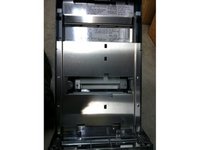 Now that it’s unplugged, on either side is a plate with four screws which are holding the dispenser head to the rest of the machine. Remove these screws on both sides and take the plates off as well. You will also need to remove the safe door from (at least) the section that you want to remove.