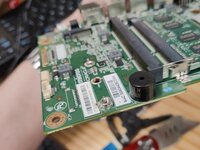 At this point you can insert your sata m.2 drive into the connector and screw it down, if your drive is a 2230. we only had 2280's in stock, to i had to desolder the screw terminal and move it to the 2280 position. note that we found not every ssd worked for this machine. we had good luck with Samsung 860 Pros