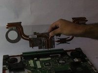 Remove the cooling assembly by unscrewing the fourteen screws holding it in place.
