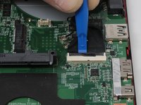 Use the plastic opening tool to pry up the connector that holds the display cable so it can be disconnected.