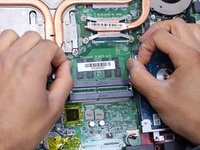 Similarly, press on the hinges on the sides of the other RAM chip, in order to unlock it.