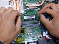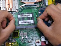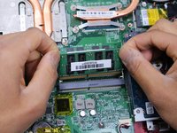 Press the hinges on the sides of the RAM chip as shown in the picture, in order to unlock it.
