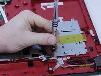 Use a Phillips screwdriver to remove the three screws along the edge of the optical drive bay.