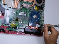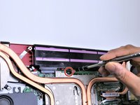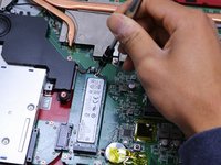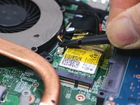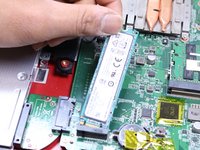 Remove the single 5.5mm Phillips #1 screw attaching the SSD to the laptop.
