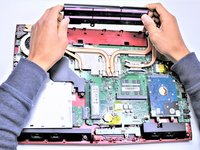 Disconnect the keyboard from the motherboard by carefully sliding the connectors out of the connections on the motherboard