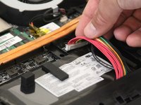 Unplug the battery, then using the black nylon spudger, carefully remove it from the laptop. It is held down by an adhesive, but can be safely removed without damaging the device.
