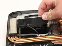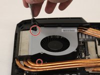 Using the Phillips #0 screwdriver, unscrew the two black 0.25 inch screws located on the sides of the cooling fan.