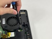 Remove the 3.6 mm screw on the bottom of the right fan using a JIS #2 screwdriver.