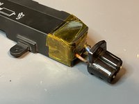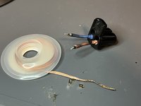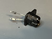 After the solder blobs on the pins are removed, insert two pieces of heat-shrink tubing over the wires and hear them with a lighter/match/candle/hot air gun.