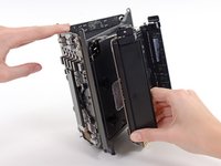 Remove the two 3.6 mm T5 Torx screws from the sides of the power supply cage (one on each side).