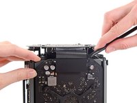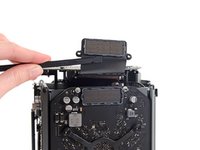 Use the flat end of a spudger to disconnect the fan assembly ribbon cable from the IO board.
