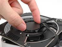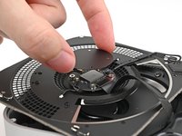 Lift the fan out of its recess in the chassis and flip it over to expose its wire and connector.