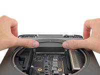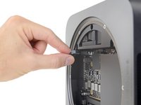 It's time to improvise—our handy Mac mini logic board removal tool technically fits in the logic board's screw holes, but it doesn't feel right. We're going to need more leverage.