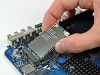 Remove the single Phillips screw securing the AirPort card to the logic board.