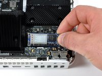 Remove the three silver Phillips screws securing the combo card to the logic board.
