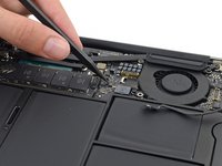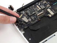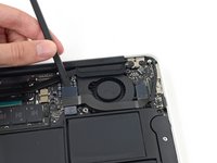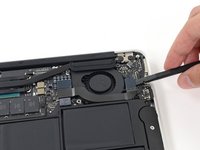 Use the tip of a spudger to carefully flip up the retaining flap on the fan cable ZIF socket.