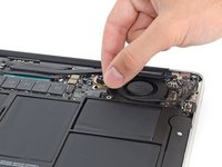Carefully pull the fan ribbon cable out of its socket as you remove the fan from the Air.