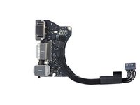 • With a light touch, we remove the I/O board for a better look at the headphone jack, a USB port, and the MagSafe 2 port.
