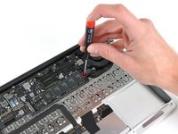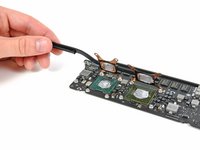 Like most recent Apple laptops, the heat sink comes out attached to the logic board. This is nice, as you'll only need to remove the heat sink and reapply thermal paste if you're replacing the logic board.