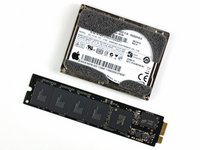 The Mini PCI Express form factor SSD drive is a completely custom part, and will probably only be available through Apple support services, thereby putting another nail in the coffin for user-serviceability.