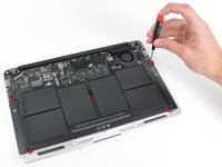 The inside of the MacBook Air is dominated by six individual lithium-polymer cells making up the 35 Wh battery.
