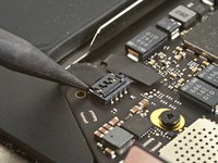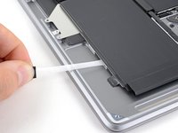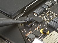 Use a spudger to slide the battery connector parallel to the logic board and out of its socket on the logic board.