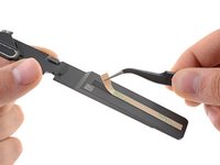 Use a pair of tweezers to peel back the black pull tab on the speaker's stretch-release adhesive until you can grip it with your fingers.