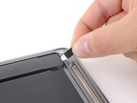 Use a pair of tweezers to lift up the black adhesive pull tab at the bottom of the right speaker, enough so you can grab it with your fingers.