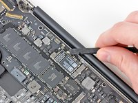Remove the single 2.85 mm T5 Torx screw securing the SSD to the logic board.