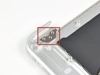 Remove the inner two 4.9 mm T8 Torx screws securing the antenna cable retainer and left clutch hinge to the upper case.