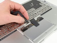 While carefully lifting the keyboard ribbon cable with one hand, use the tip of a spudger or your fingernail to flip up the retaining flap on the keyboard ribbon cable ZIF socket.