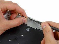 While carefully lifting the keyboard ribbon cable with one hand, use the tip of a spudger or your fingernail to flip up the retaining flap on the keyboard ribbon cable ZIF socket.