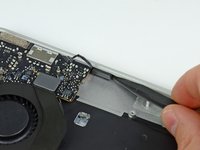 Use the tip of a spudger to pry the microphone off the adhesive securing it to the left side of the upper case.