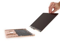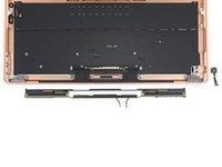 A few more Torx screws later, the display is free! This new Retina panel is almost the same as the one found on the MacBook Pro line, differing mainly in peak brightness (a mere 300 nits vs. the Pro's 500) and P3 color gamut support.