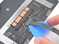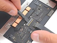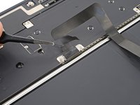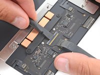 Use tweezers or your fingers to remove the tape from the trackpad cable.