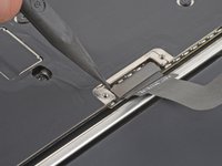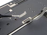 Heat an iOpener and apply it to the trackpad cable for two minutes to soften the adhesive securing it to the frame.