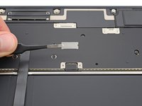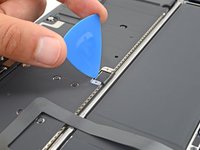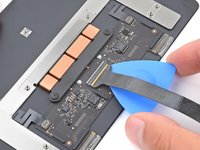 Use the tip of a spudger or a clean fingernail to flip up the hinged locking flap on the trackpad cable ZIF connector.