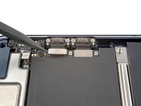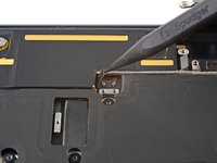 Use an opening pick to pry up and disconnect the battery press connector.