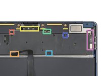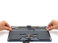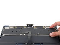Reposition the trackpad cable over the bottom edge of the MacBook so it's out of the way of the battery.