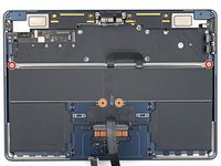 Use a T3 Torx driver to remove the two 1.5 mm screws securing the trackpad cable cover.