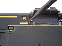 Use a T3 Torx driver to remove the two 1.5 mm screws securing the battery connector cover.