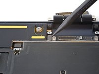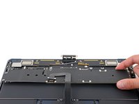 Use a spudger or your fingers to move the trackpad cable cover out of the way so you can access the press connector underneath.