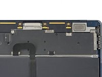 Disconnect the microphone array press connector, directly to the left of the display cable.