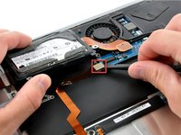 Remove the 4.7 mm Phillips screw securing the hard drive to the upper case.